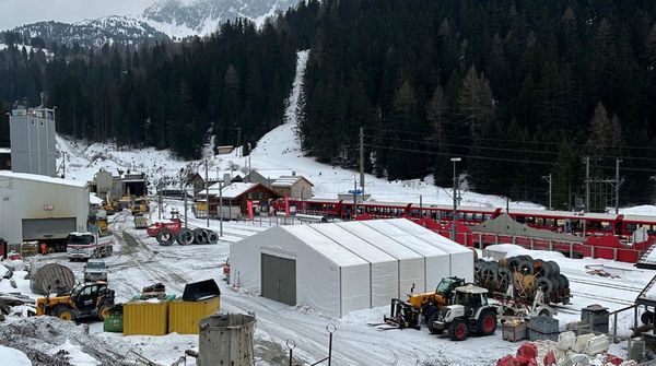 Dass die Baustelle in Preda nur mit der Rhätischen Bahn zu erreichen ist, verursacht einen erheblichen logistischen Aufwand. Als Konsequenz wurde vor Ort ein provisorisches Materiallager eingerichtet. Wie dieses Lager entsteht, zeigt das Zeitraffervideo.